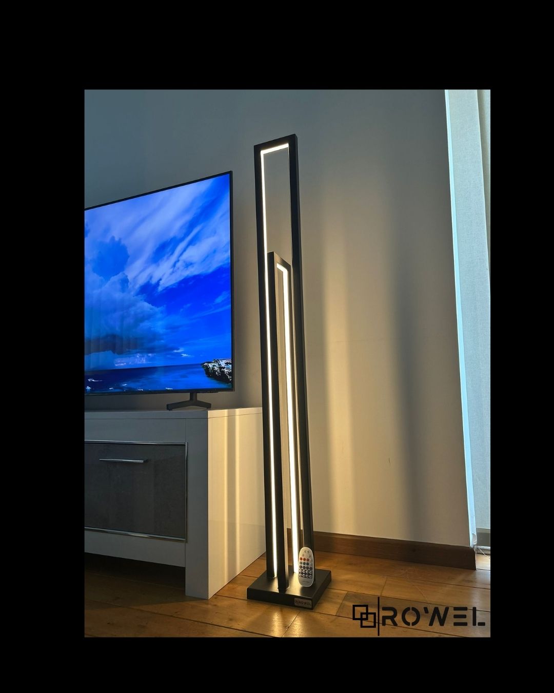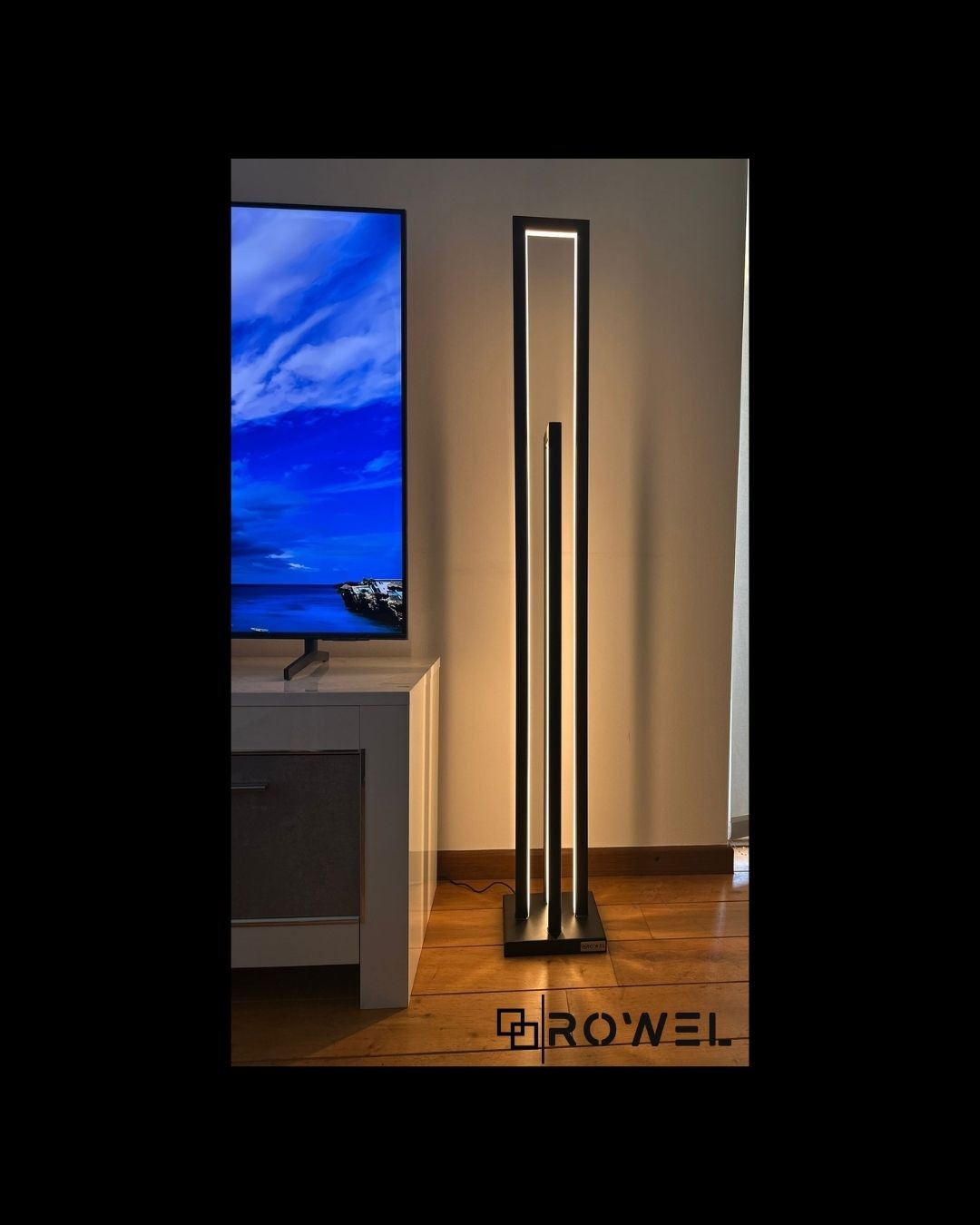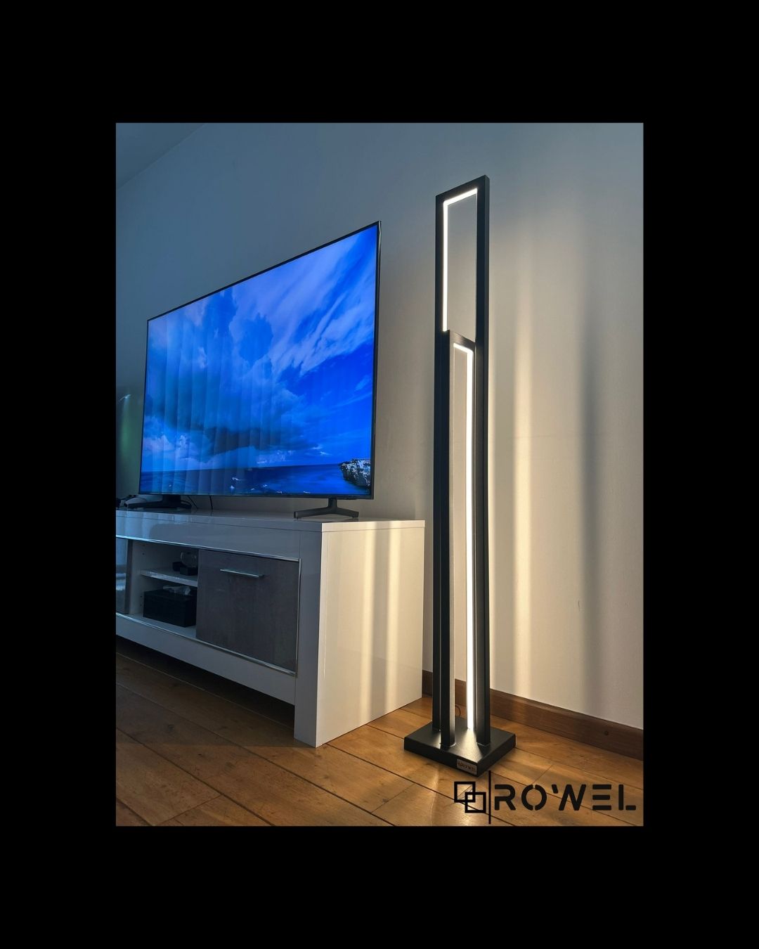 Deze vloerlamp werd op maat vervaardigd uit staal en voorzien van geïntegreerde LED-verlichting. De slanke verticale lijnen zorgen voor een gelijkmatige lichtverdeling zonder te overheersen in de ruimte. De lamp staat vrij op een stalen voet en combineert functionele verlichting met een rustig, grafisch ontwerp. Dankzij de afstandsbediening kan de lichtintensiteit en kleur eenvoudig worden aangepast aan het moment en de ruimte.